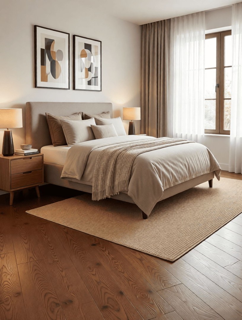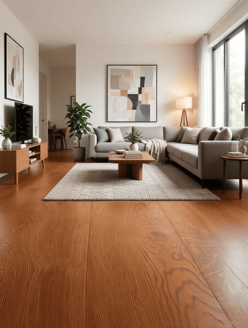 Благородный коричневый оттенок: Насыщенный, тёплый и глубокий цвет подчеркивает текстуру дуба, добавляя интерьеру солидности, уюта и визуальной «тяжести». Такой пол становится стильным акцентом, вокруг которого строится весь дизайн помещения.