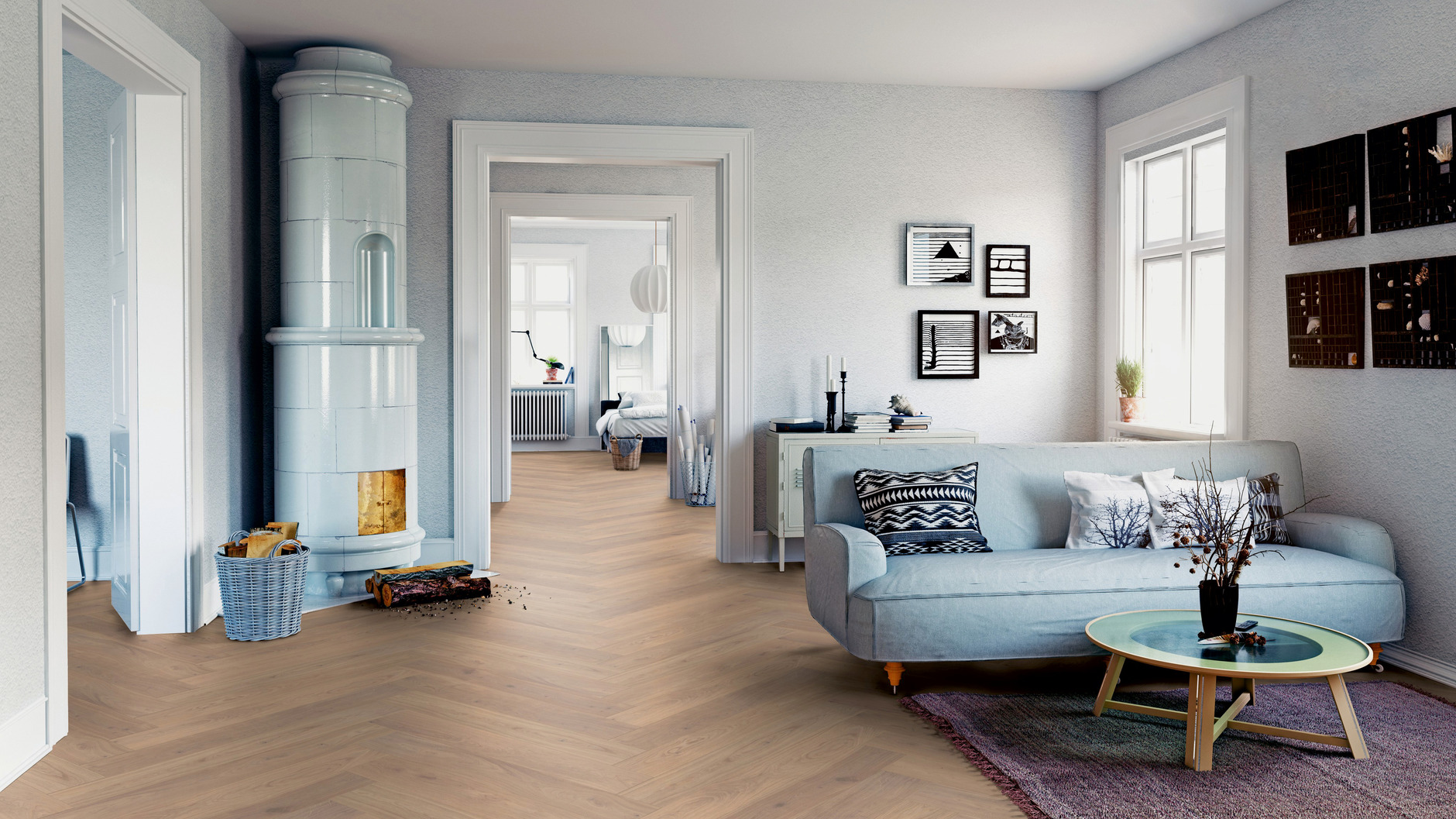 Системная планка Ter Hurne предлагает множество вариантов укладки паркета: трехрядная Английская Елочка с фризом по контуру, шахматным способом, плетеным способом и другие.
