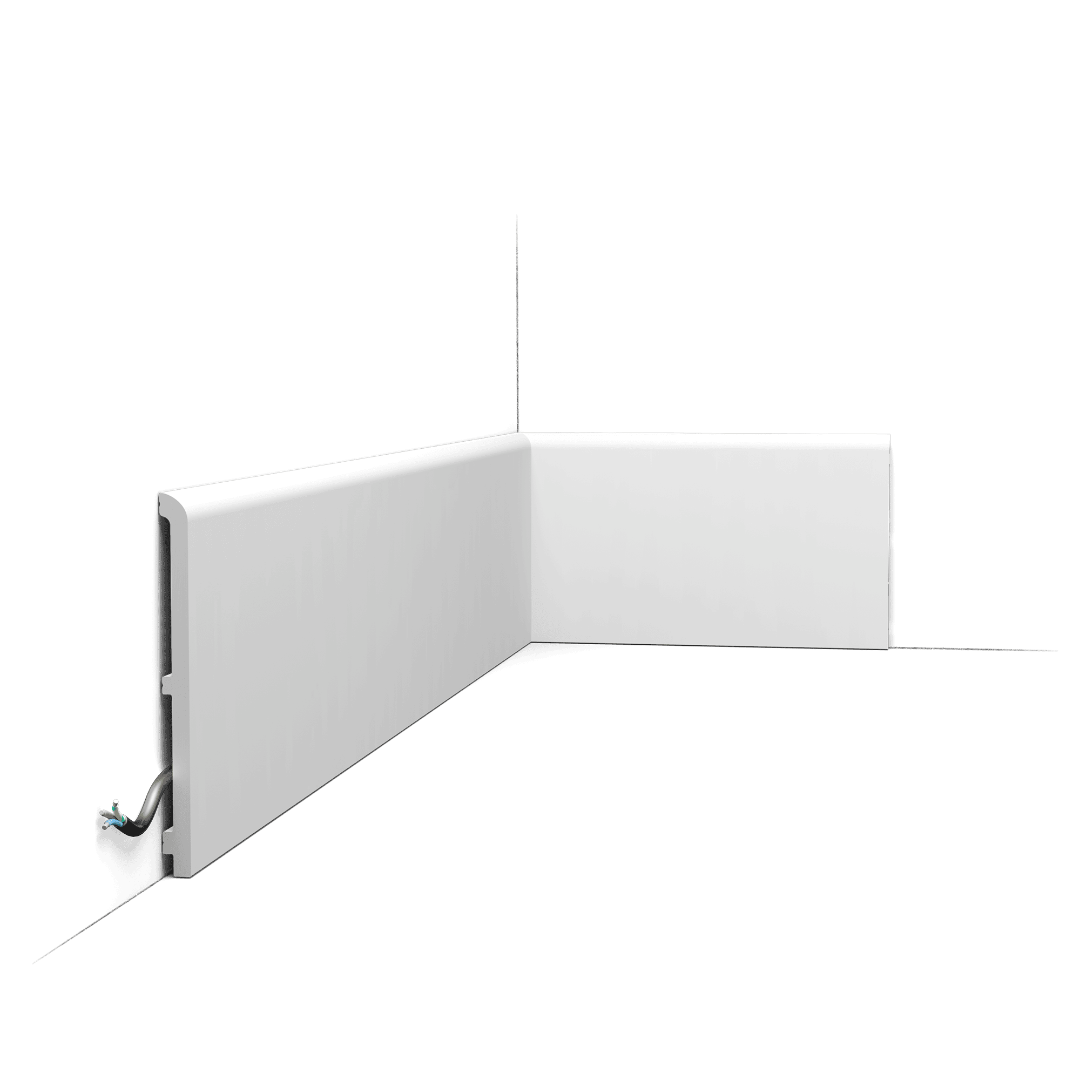 Подготовлен под покраску: Поставляется в белом грунтовочном покрытии, что позволяет окрасить плинтус в любой цвет по палитрам RAL или NCS для безупречного сочетания со стенами, полом или дверными наличниками.